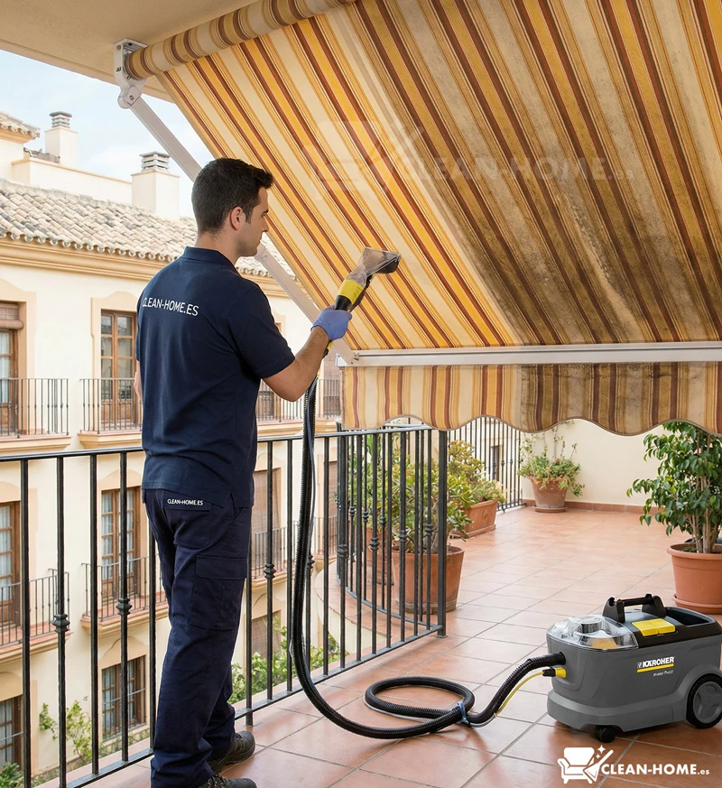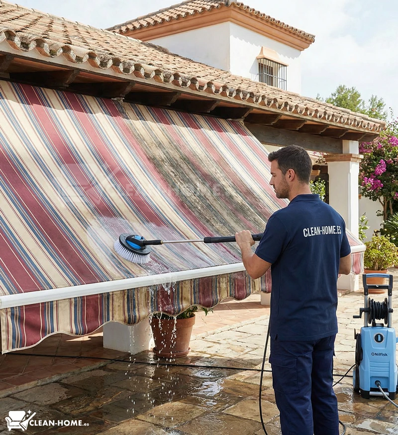 The duration depends on several factors such as the size of the awning, the level of dirt, the type of fabric, access to the area and the surrounding conditions. As a general reference, an awning of up to 7 m² typically takes between 1 and 2 hours to clean, although some cases may require more time.
